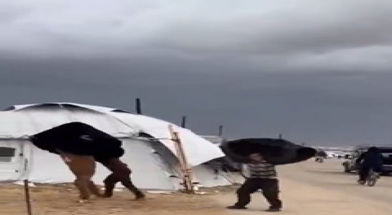 رياح عاتية تقتلع خيام النازحين في قطاع غزة وتفاقم المأساة الإنسانية